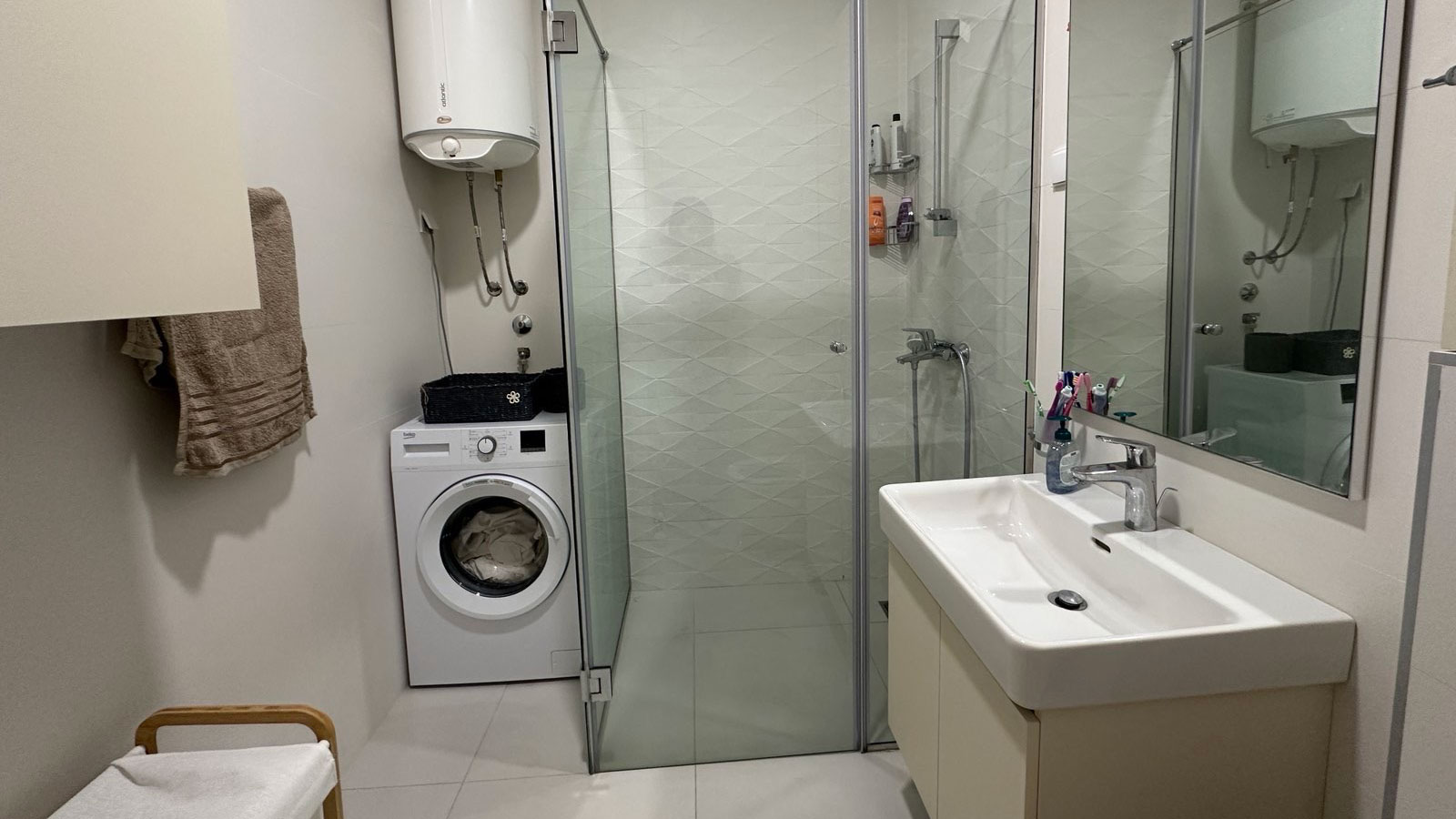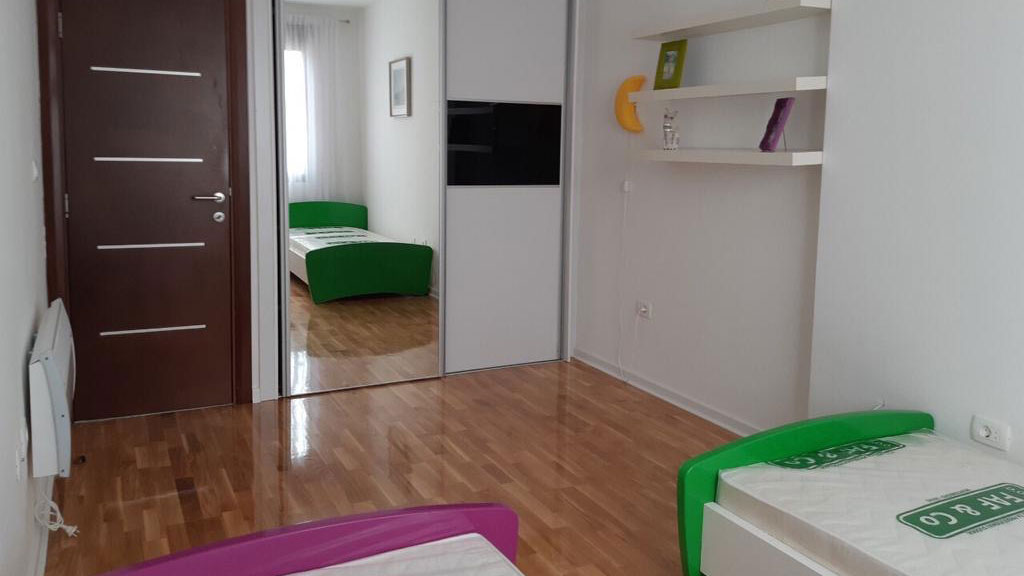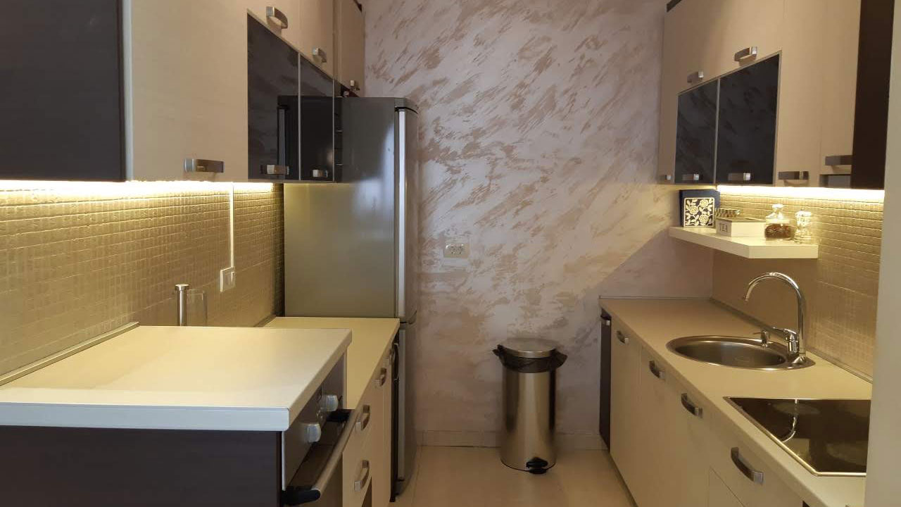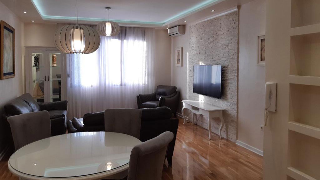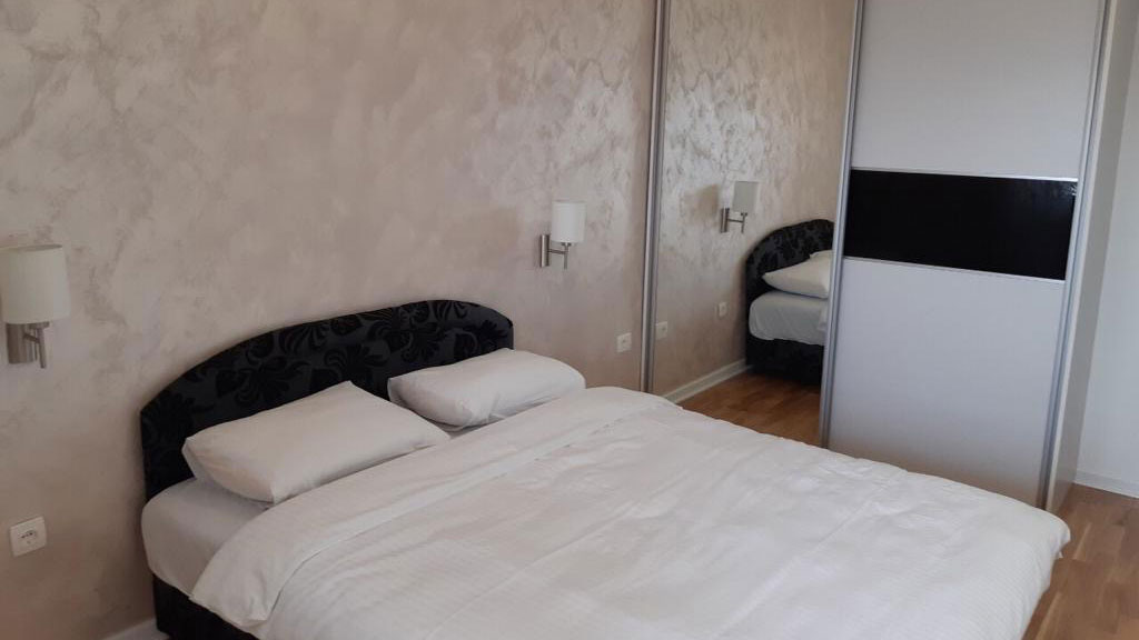 The apartment consists of two bedrooms, two bathrooms, a spacious living room and a kitchen equipped with top LG and Bosch appliances. The furniture is from the renowned brands Natuzzi and Doding, which gives the space special comfort and elegance.