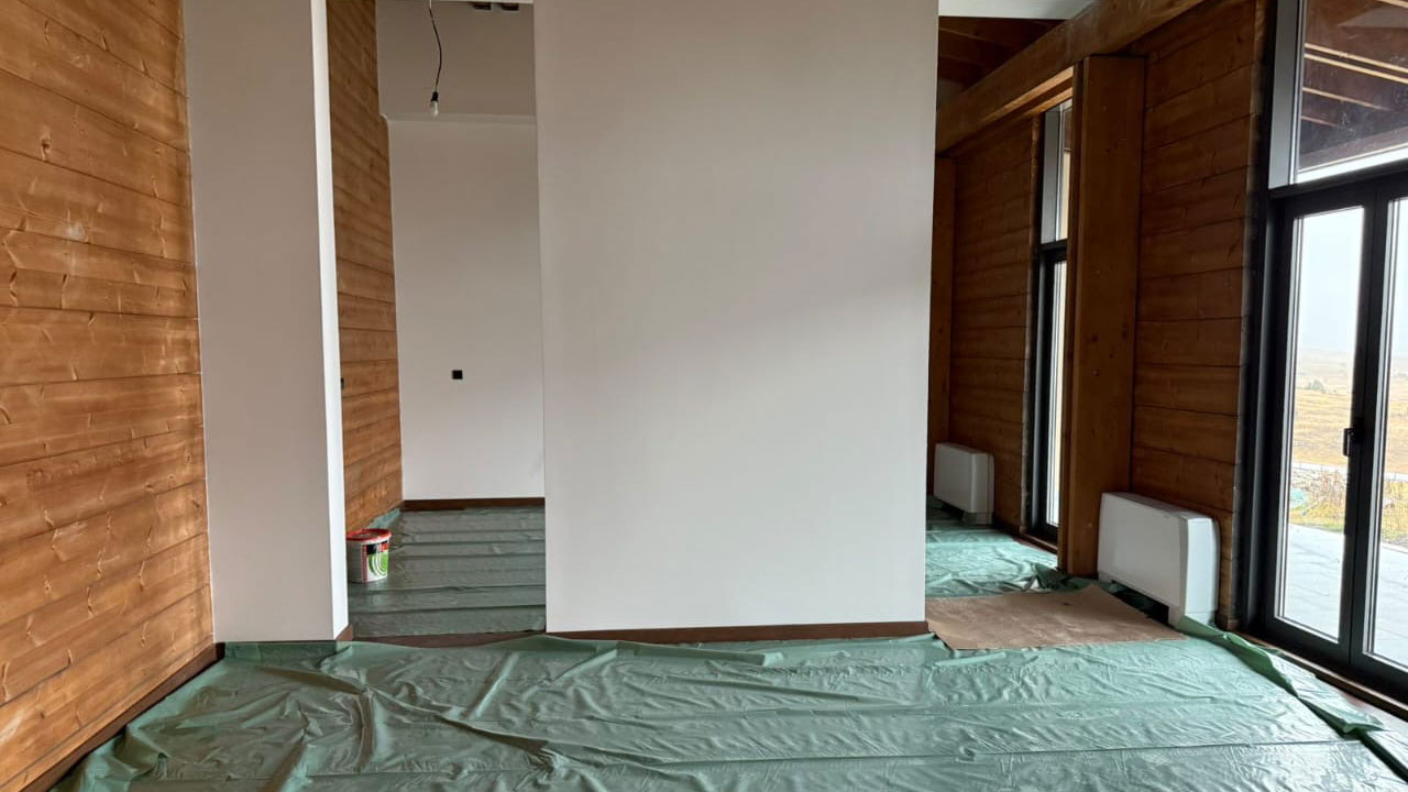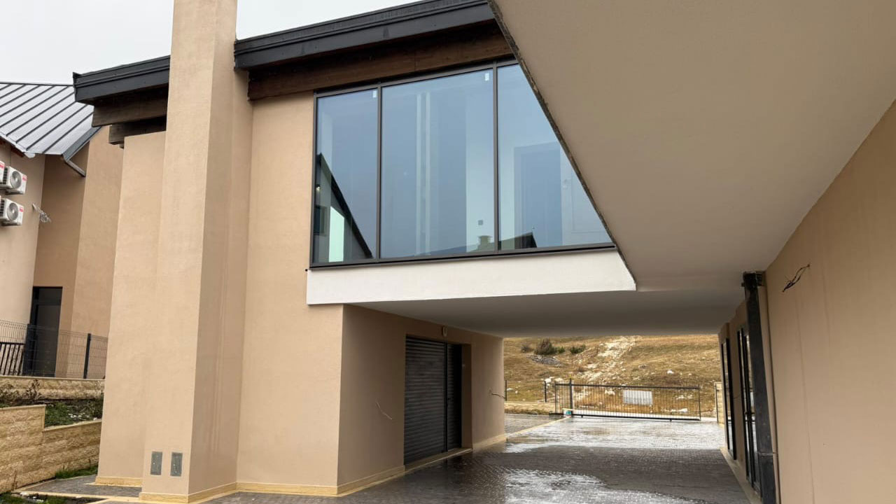 Kuća je dizajnirana kao luksuzni projekat za cjelogodišnji život i rekreaciju. Visoki plafoni, masivne drvene grede, veliki panoramski prozori s pogledom na Durmitor, prirodni kamen, vrhunska završna obrada i prostrani rasporedi stvaraju osjećaj prostora, svjetlosti i jedinstvene atmosfere planinskog odmarališta….