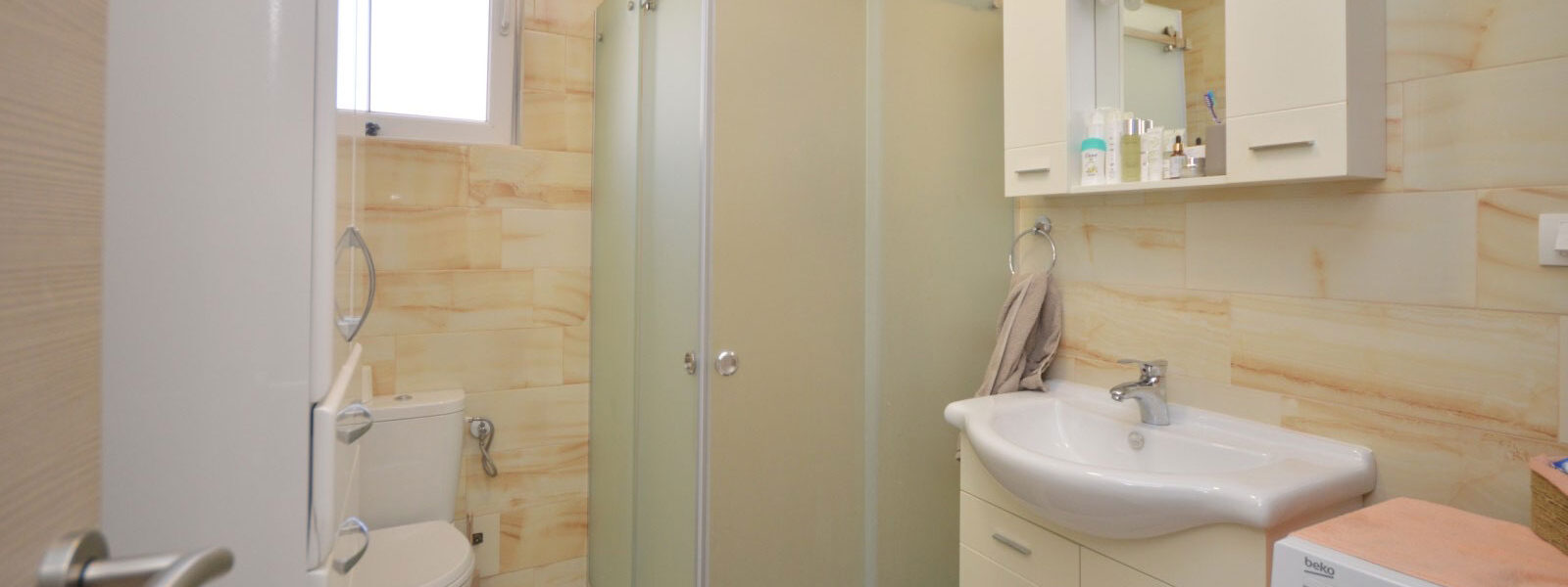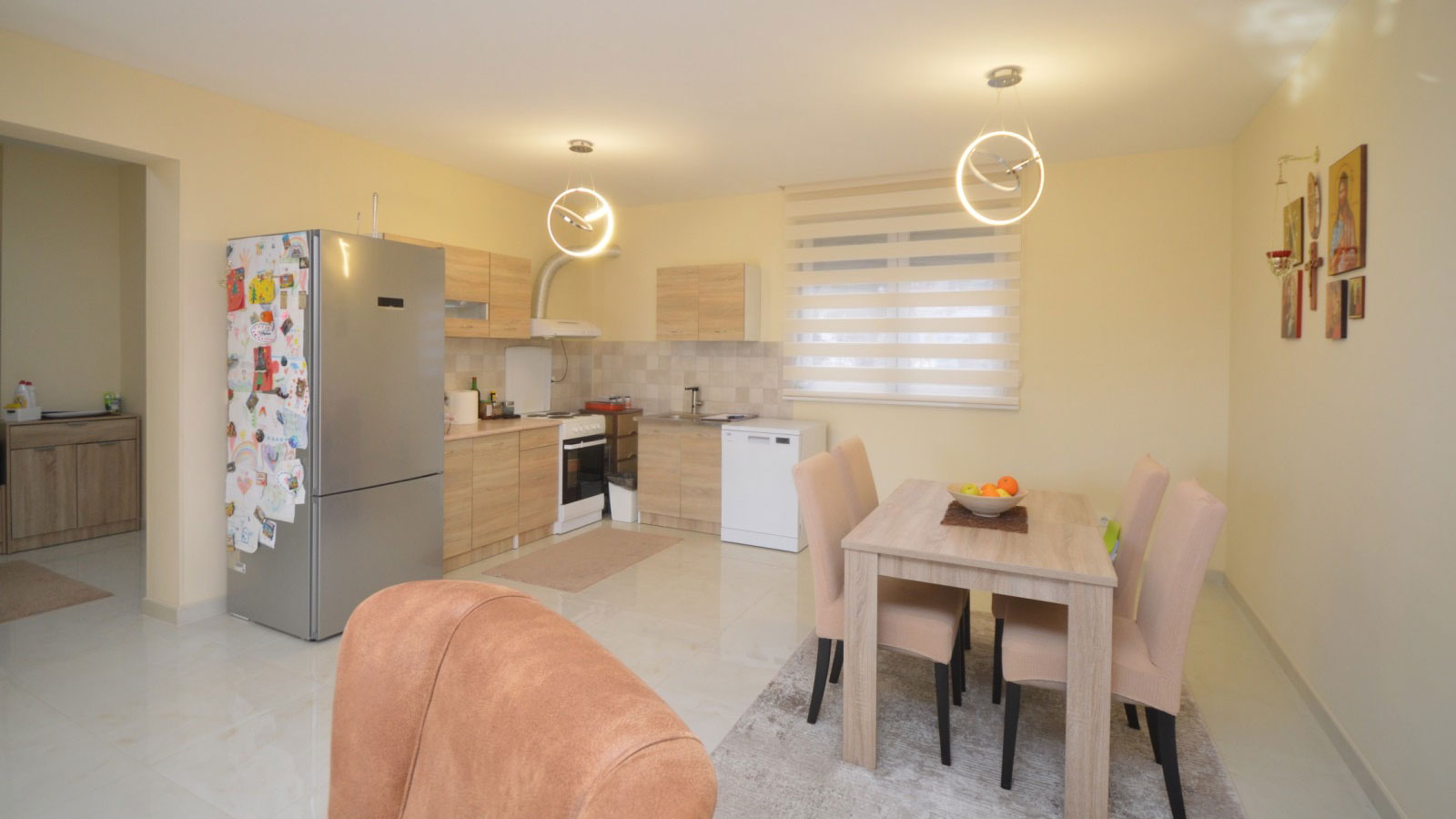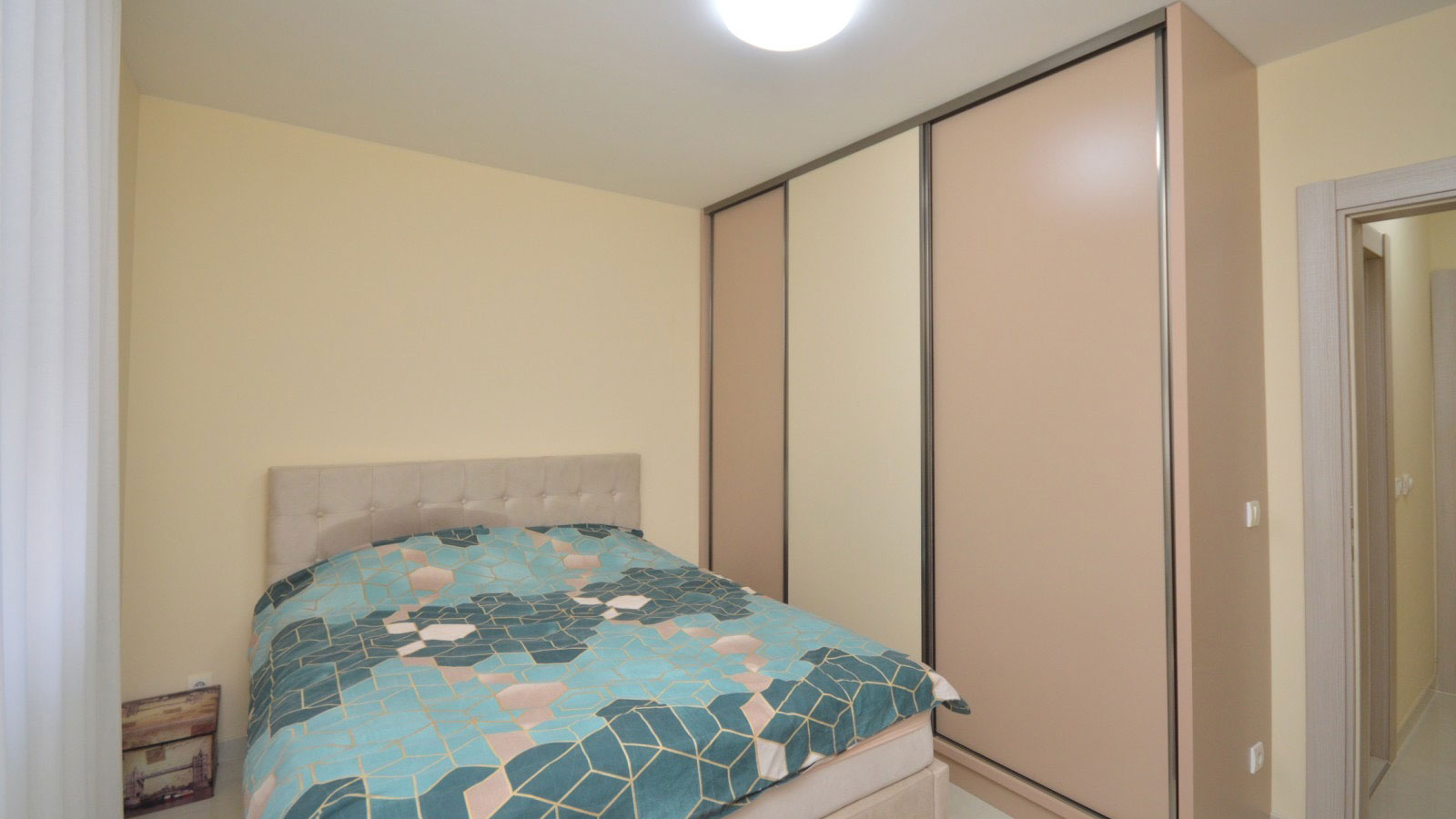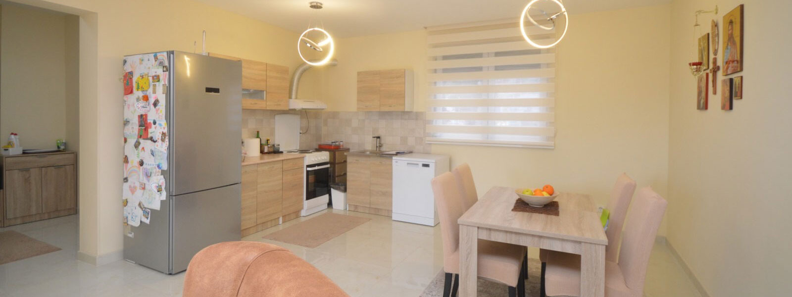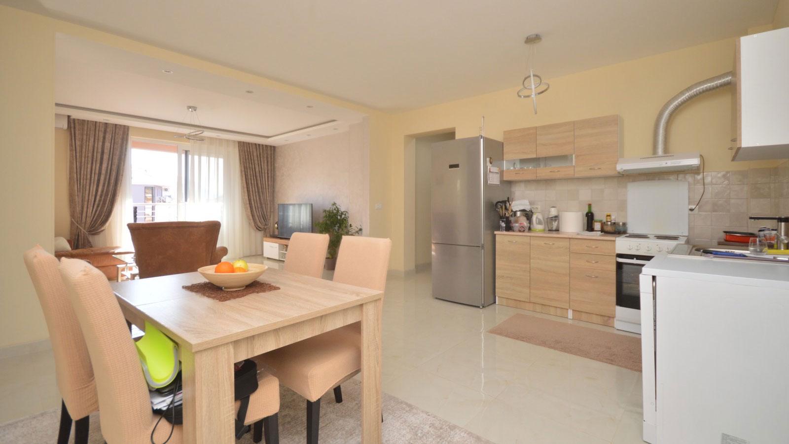 Struktura: dnevni boravak sa trpezarijom i kuhinjom, dvije spavaće sobe, dva hodnika, kupatilo, terasa.