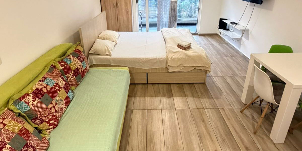 Nalazi se na trećem spratu i kompletno je opremljena. Gleda ka dvorištu zgrade.